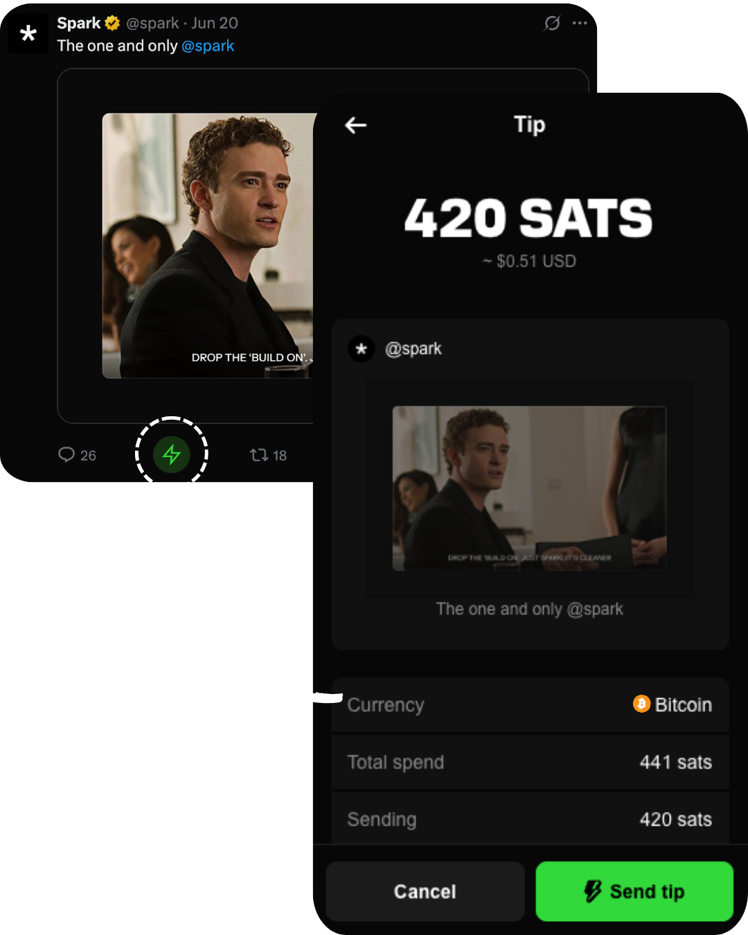 BitBit runs on Spark, a next-gen Bitcoin Layer 2 built for speed, scale, and nonstop tipping. No custodians. No delays. Just pure sats, flying fast.