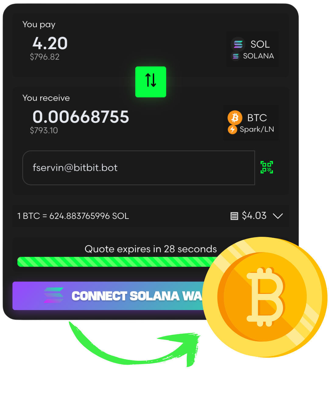 Got SOL? BitBit lets you swap it into Bitcoin instantly. No logins, no waiting. Just real crypto, moving freely.